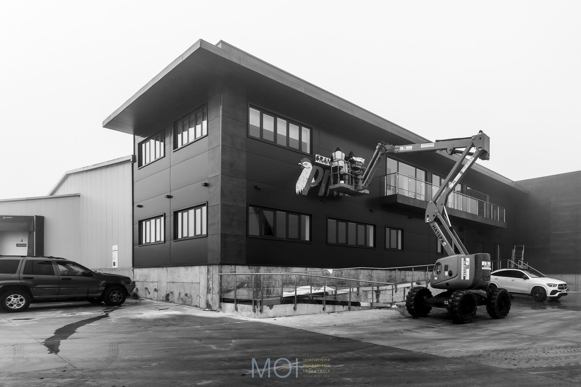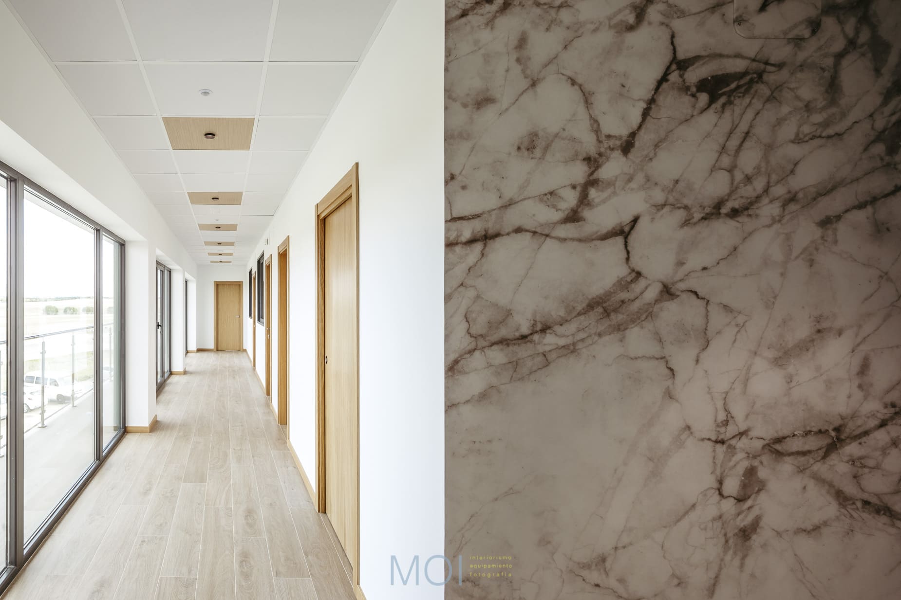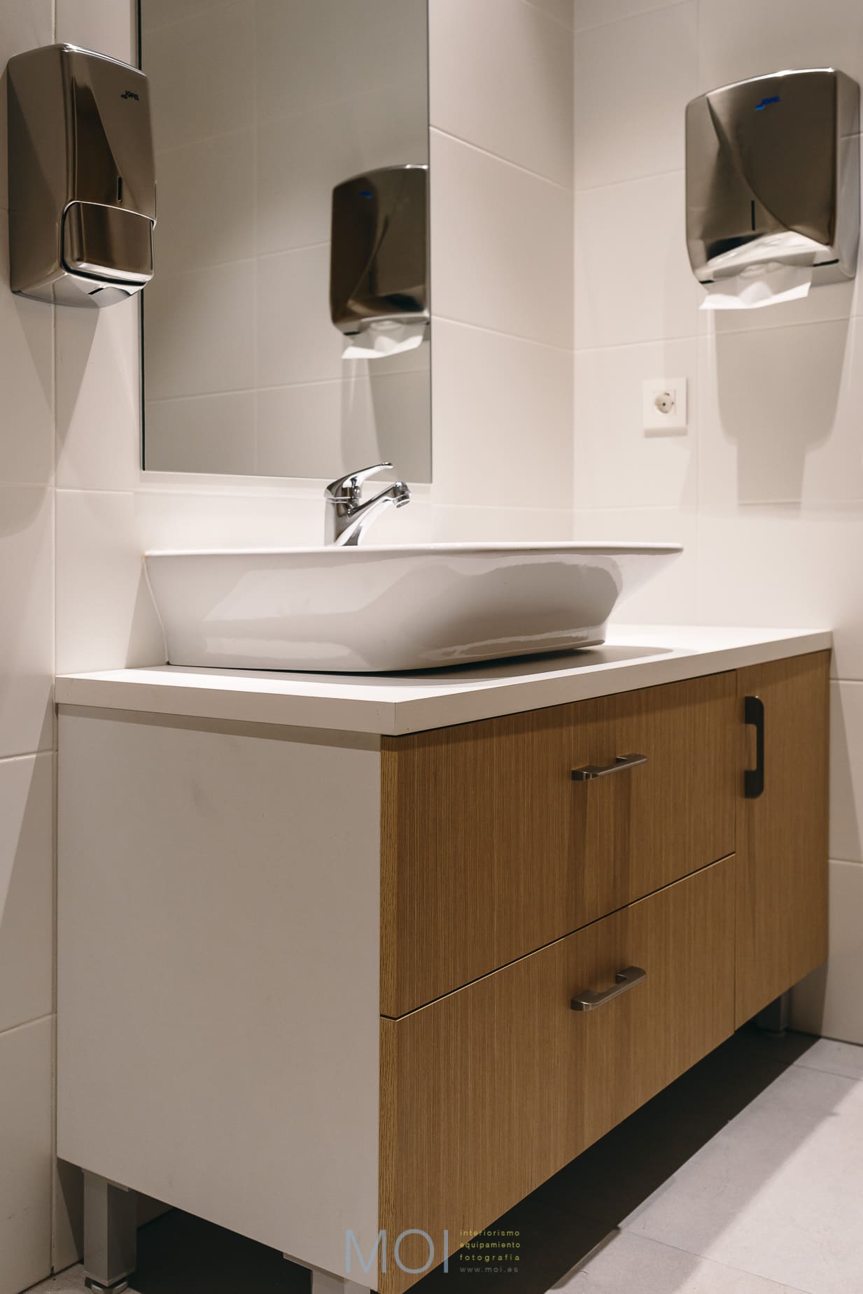 Propusimos crear un entorno de trabajo acogedor y amigable que, a la vez, sirviese de elemento de presentación de cara a clientes y proveedores. Empleando materiales naturales como la madera en combinación con el blanco y elementos decorativos que evocaban mármoles, elementos acústicos con los colores corporativos, incorporación de los más actuales sistemas tecnológicos, vinilos, rótulos de fachada, accesorios… realizamos un equipamiento integral en el que todo está relacionado, desde los puestos de trabajo a la sala de juntas. Desde los accesorios de los vestuarios de los trabajadores a la sala de formación. Desde la iluminación a las pantallas táctiles de 86″.