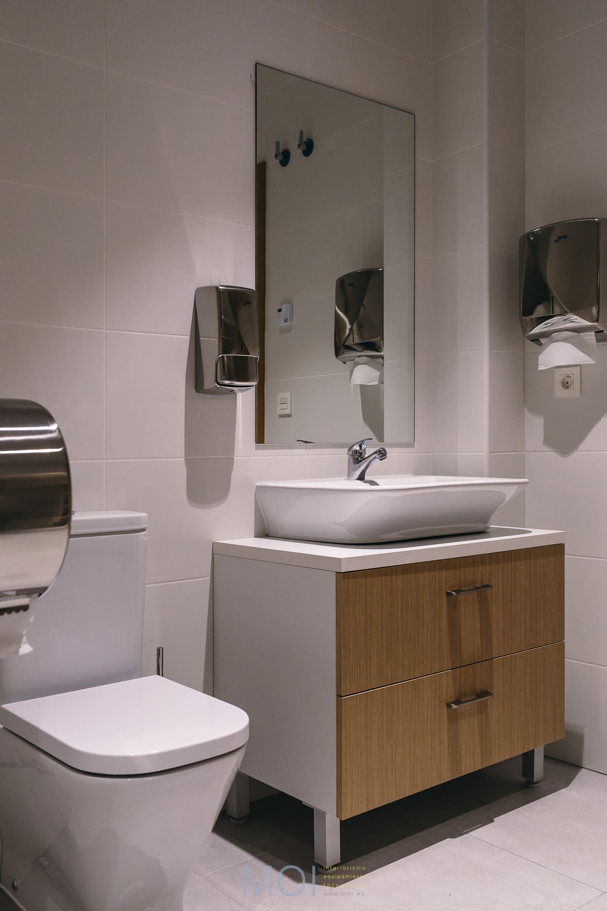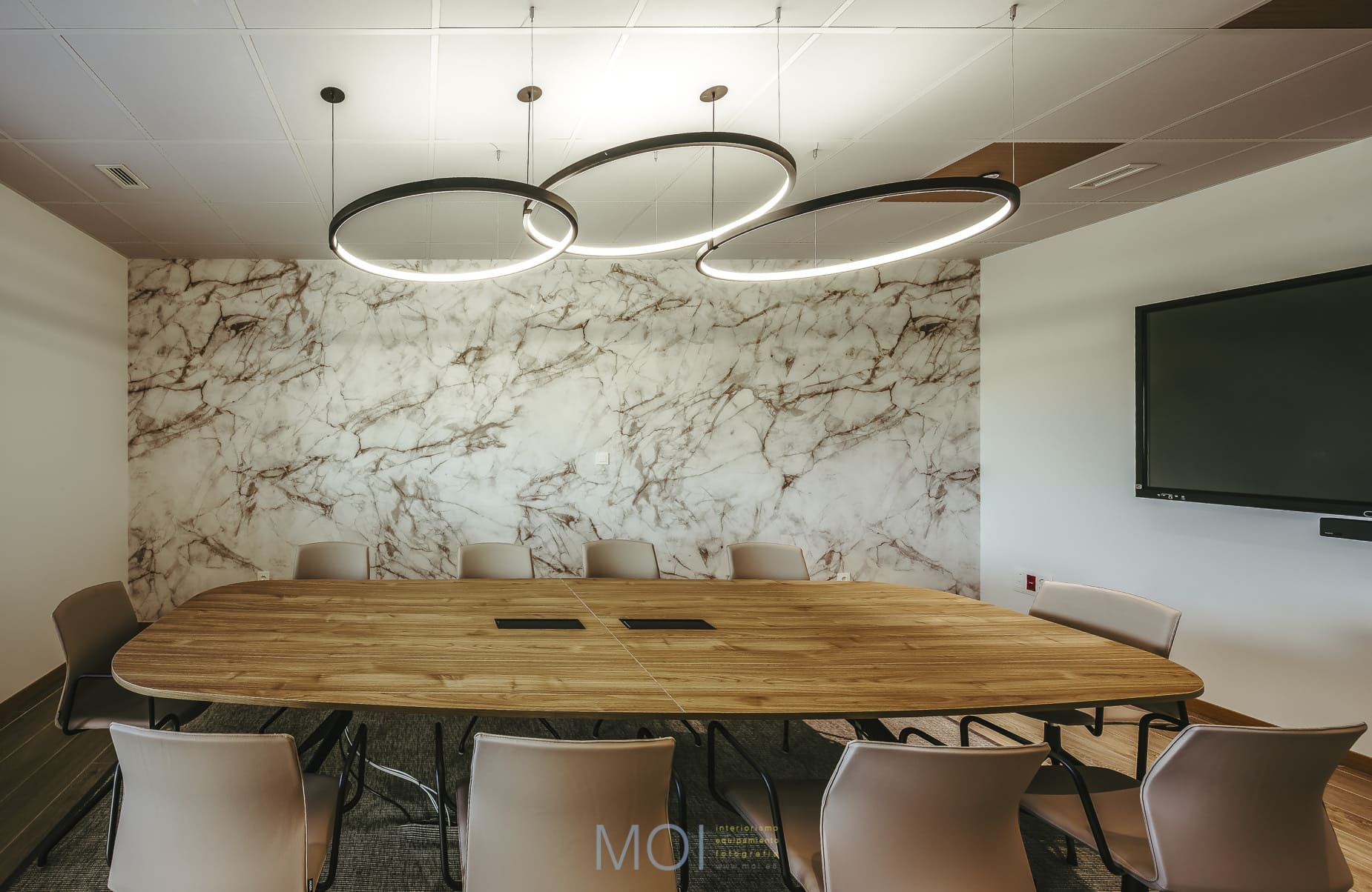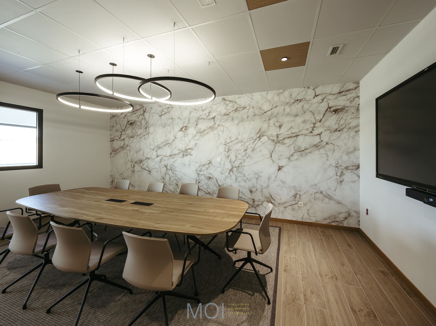 Propusimos crear un entorno de trabajo acogedor y amigable que, a la vez, sirviese de elemento de presentación de cara a clientes y proveedores. Empleando materiales naturales como la madera en combinación con el blanco y elementos decorativos que evocaban mármoles, elementos acústicos con los colores corporativos, incorporación de los más actuales sistemas tecnológicos, vinilos, rótulos de fachada, accesorios… realizamos un equipamiento integral en el que todo está relacionado, desde los puestos de trabajo a la sala de juntas. Desde los accesorios de los vestuarios de los trabajadores a la sala de formación. Desde la iluminación a las pantallas táctiles de 86″.
