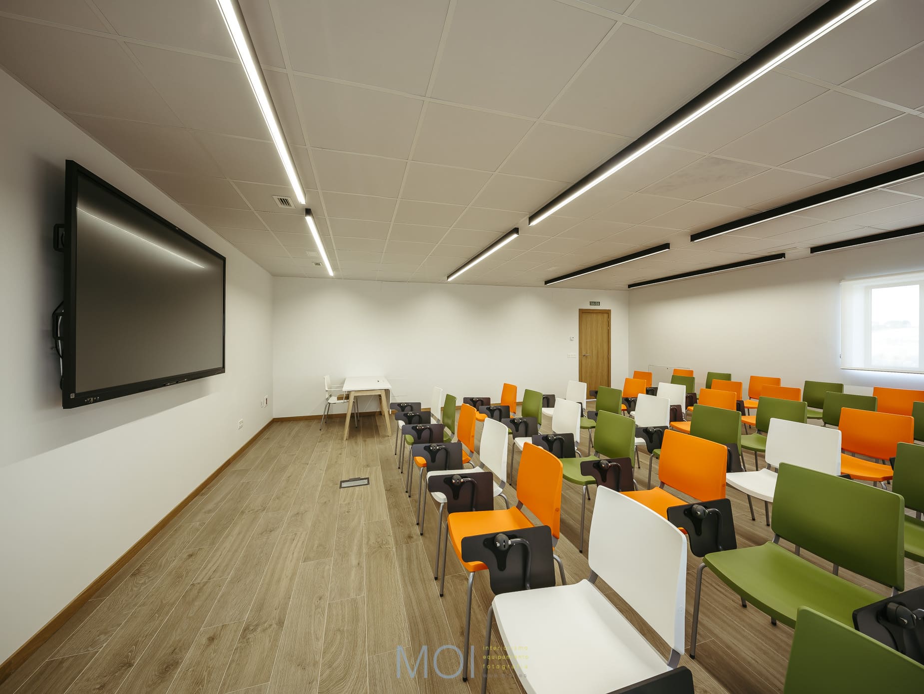 Hoy en día la conectividad y la tecnología audiovisual son tremendamente importantes por lo que se desplegó un sistema de pantallas táctiles multifuncionales de grandes dimensiones dotadas de videoconferencia tanto en el aula como en la sala de reuniones y en la sala multifuncional.