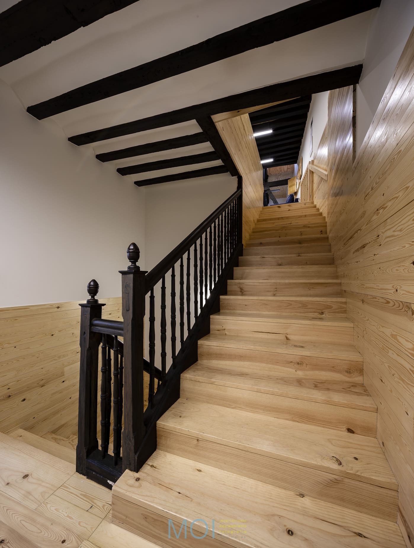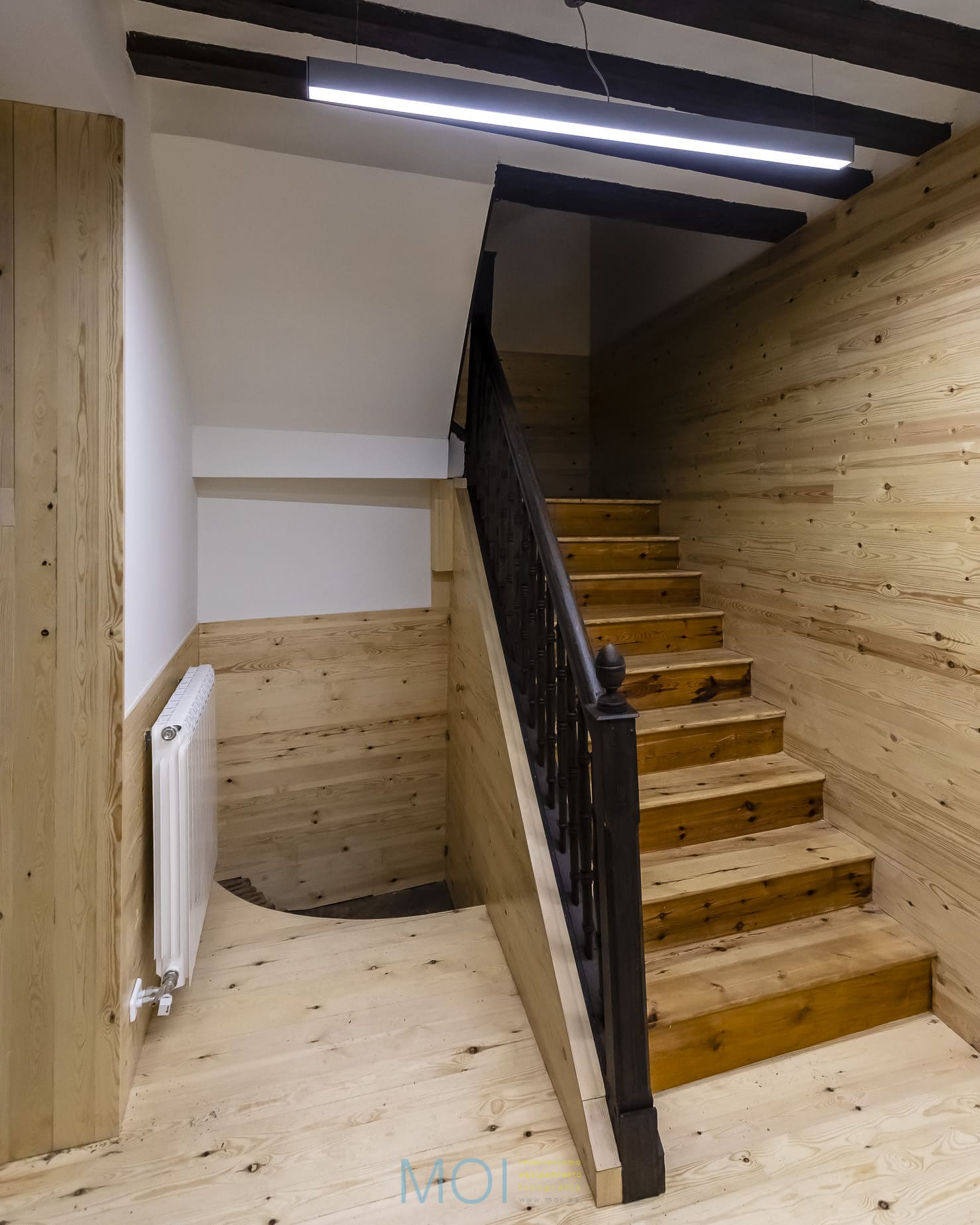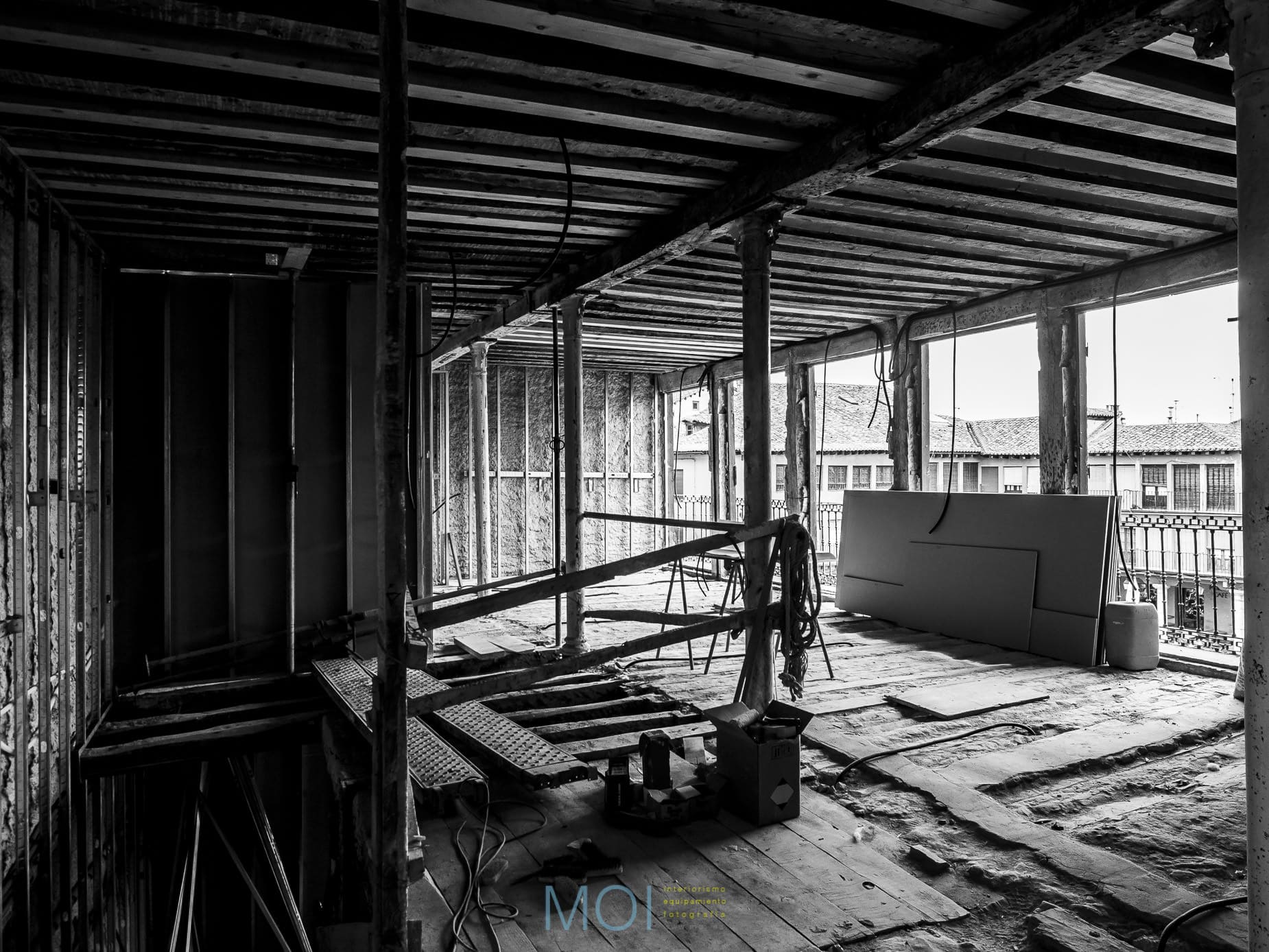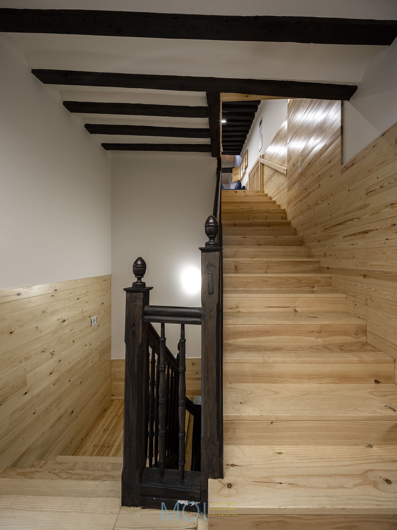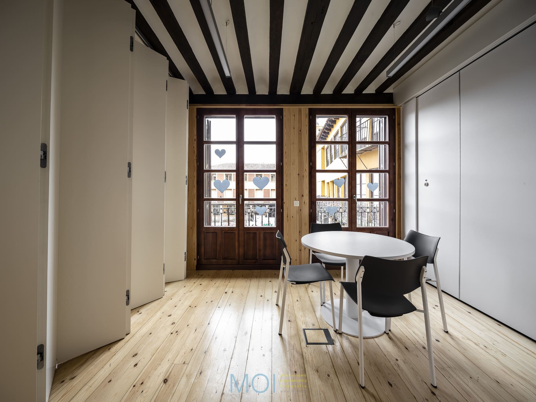 En toda la intervención el estudio de arquitectura tuvo muy presente el carácter que debía tener el centro. Se empleó la madera natural de pino tanto en suelo como en paramentos verticales logrando crear una atmósfera cálida y sensorial. Un espacio que, a pesar de ser reducido, presenta soluciones polivalentes que lo magnifican. Un espacio antiguo en el que una intervención moderna pone en valor las preexistencias y recupera un edificio en un entorno tan singular y complejo como la plaza mayor de Tordesillas. Y, lo más importante: un espacio que se muestra útil y adecuado para sus usuarios que encuentran el confort necesario para desarrollar en él su actividad.