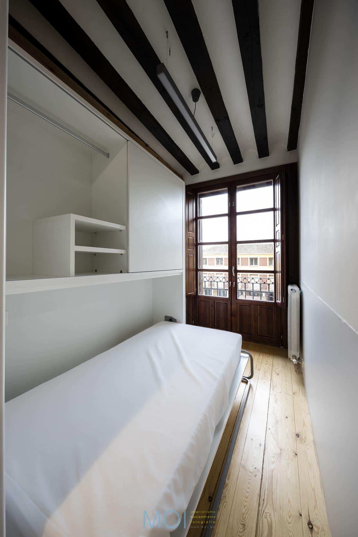 En estas habitaciones los arquitectos proyectaron unas células multifuncionales que se realizaron a medida para aprovechar el espacio al máximo.
