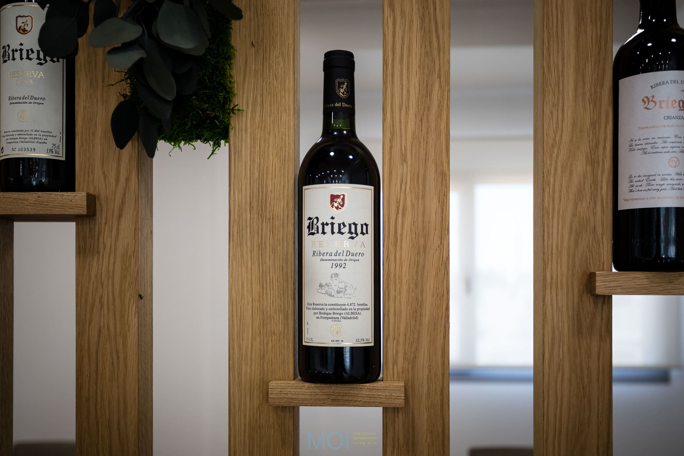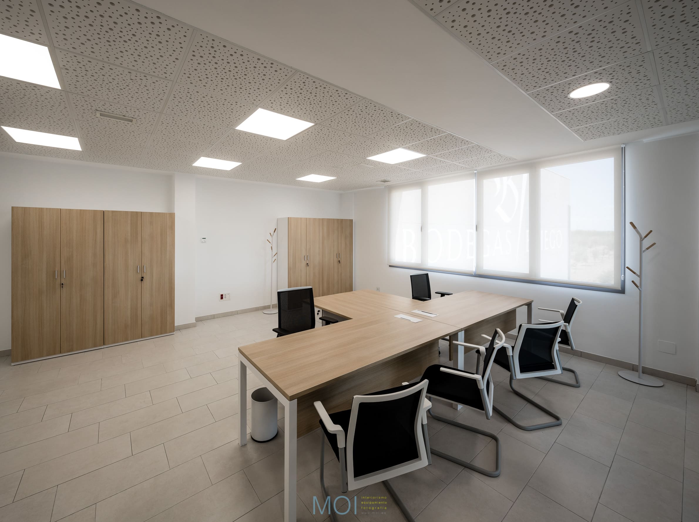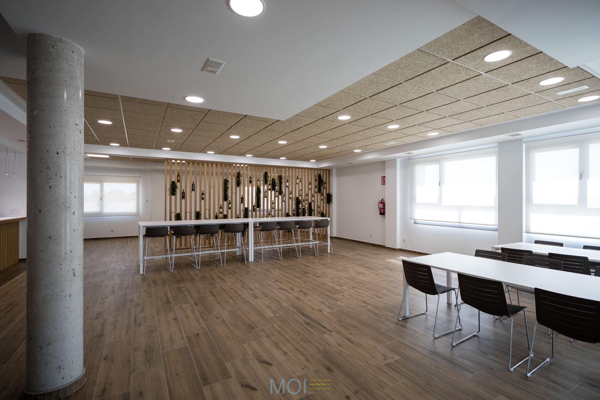 En Briego, MOI se ha ocupado del equipamiento integral del edificio: Mobiliario de oficina, mostradores, salas de catas, zonas de descanso, laboratorio, cocinas, comedores, mobiliario a medida, iluminación decorativa, complementos, jardines verticales, ebanistería, sistemas de oscurecimiento y control solar, alfombras… hasta los vinilos y el imponente logo de 20 metros de fachada.