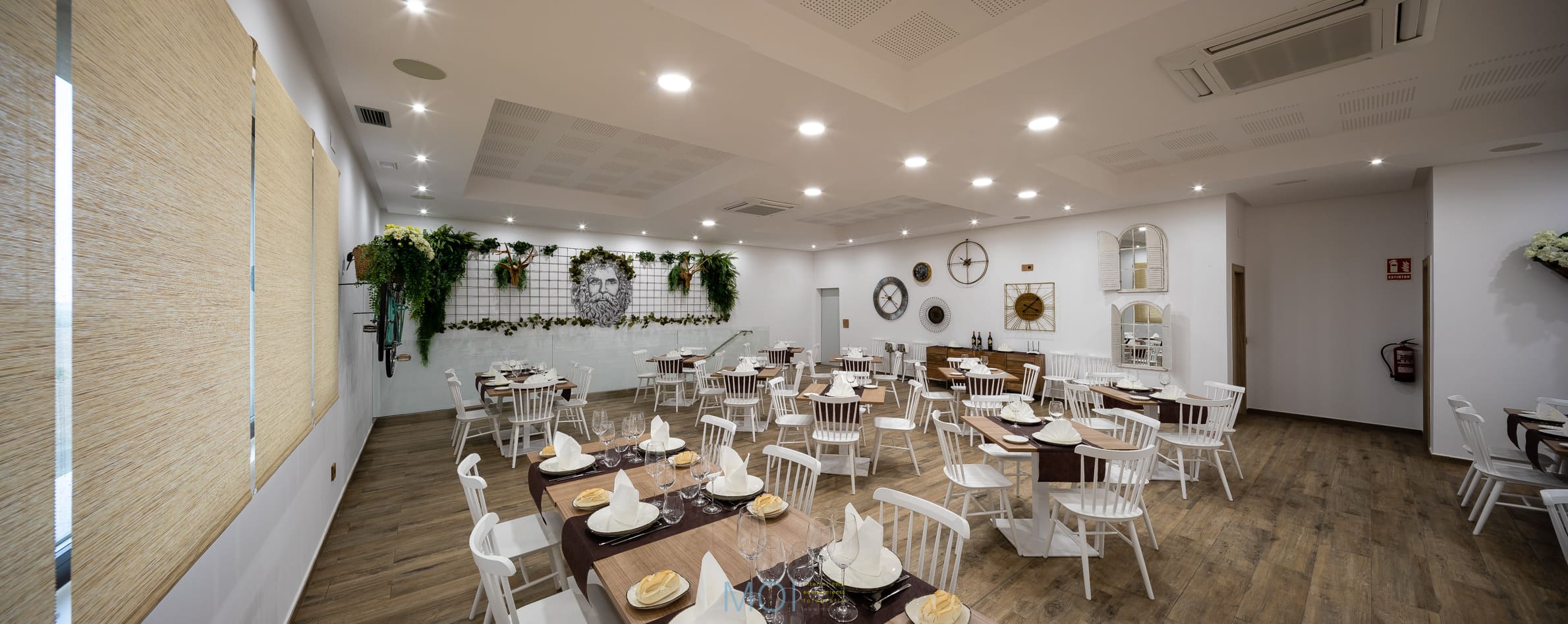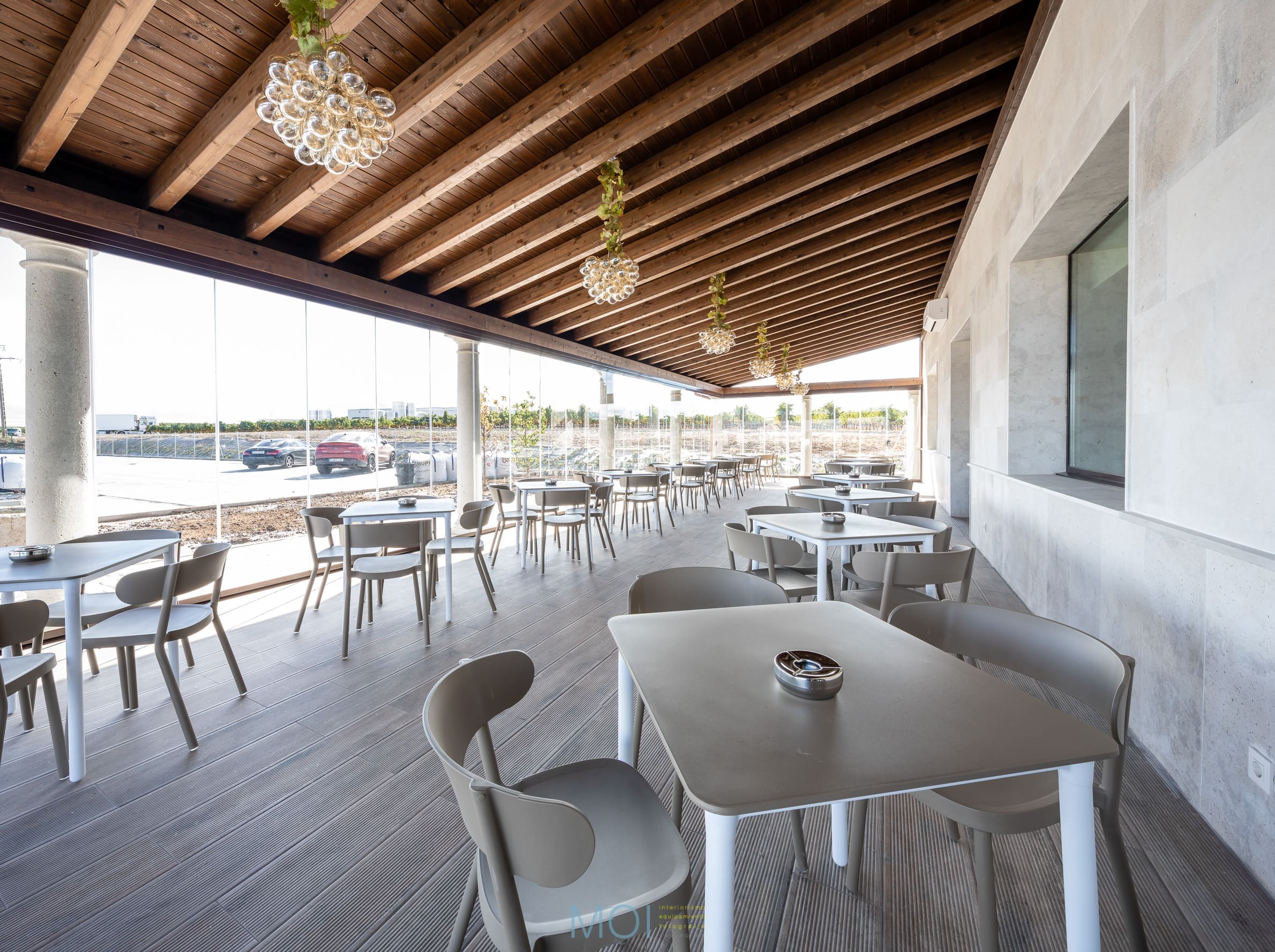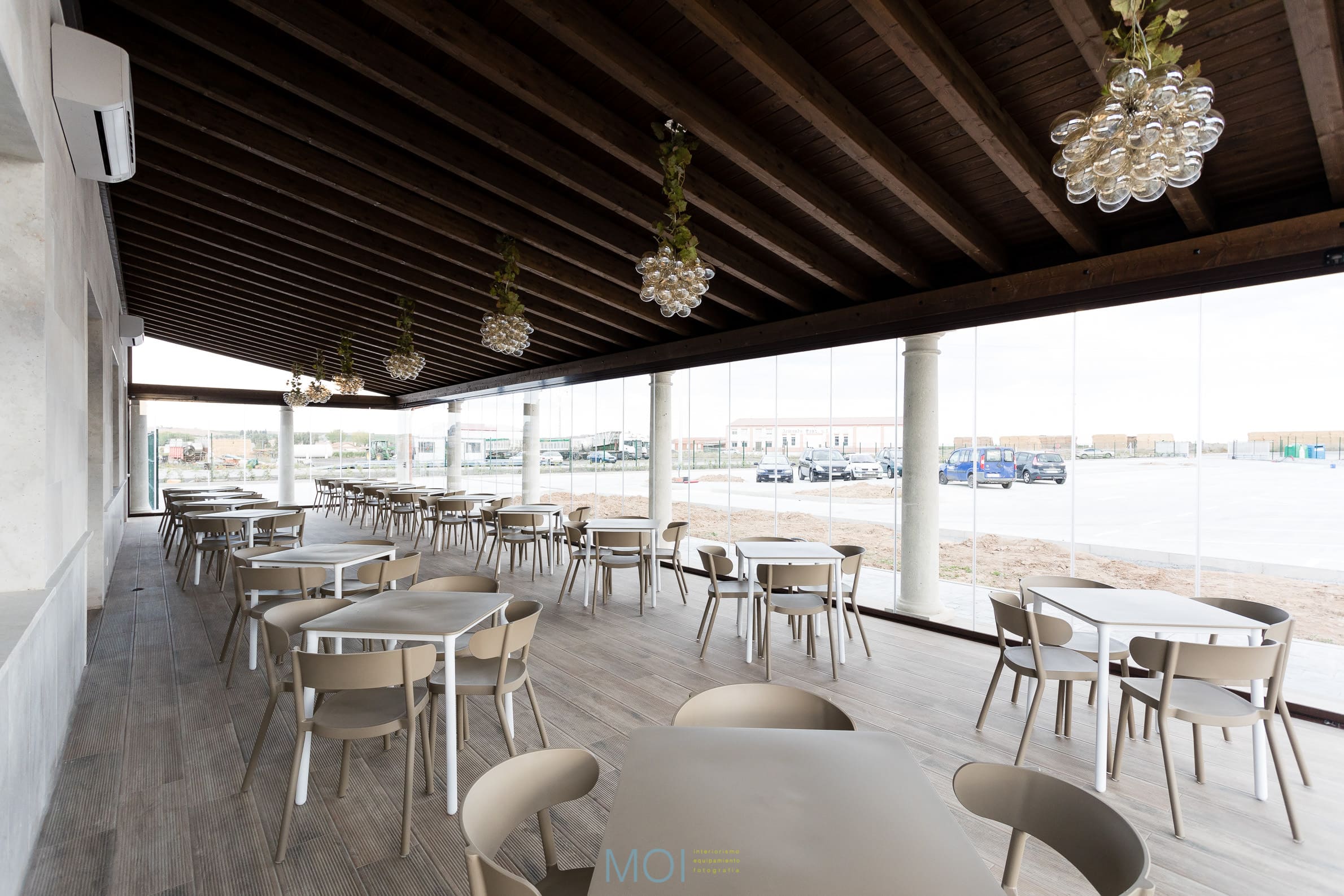 Se trata de una instalación rodeada de los típicos viñedos de la zona que cuenta con cuatro ámbitos diferenciados: Zona de cafetería, zona de terraza y dos salones comedores de amplia capacidad.