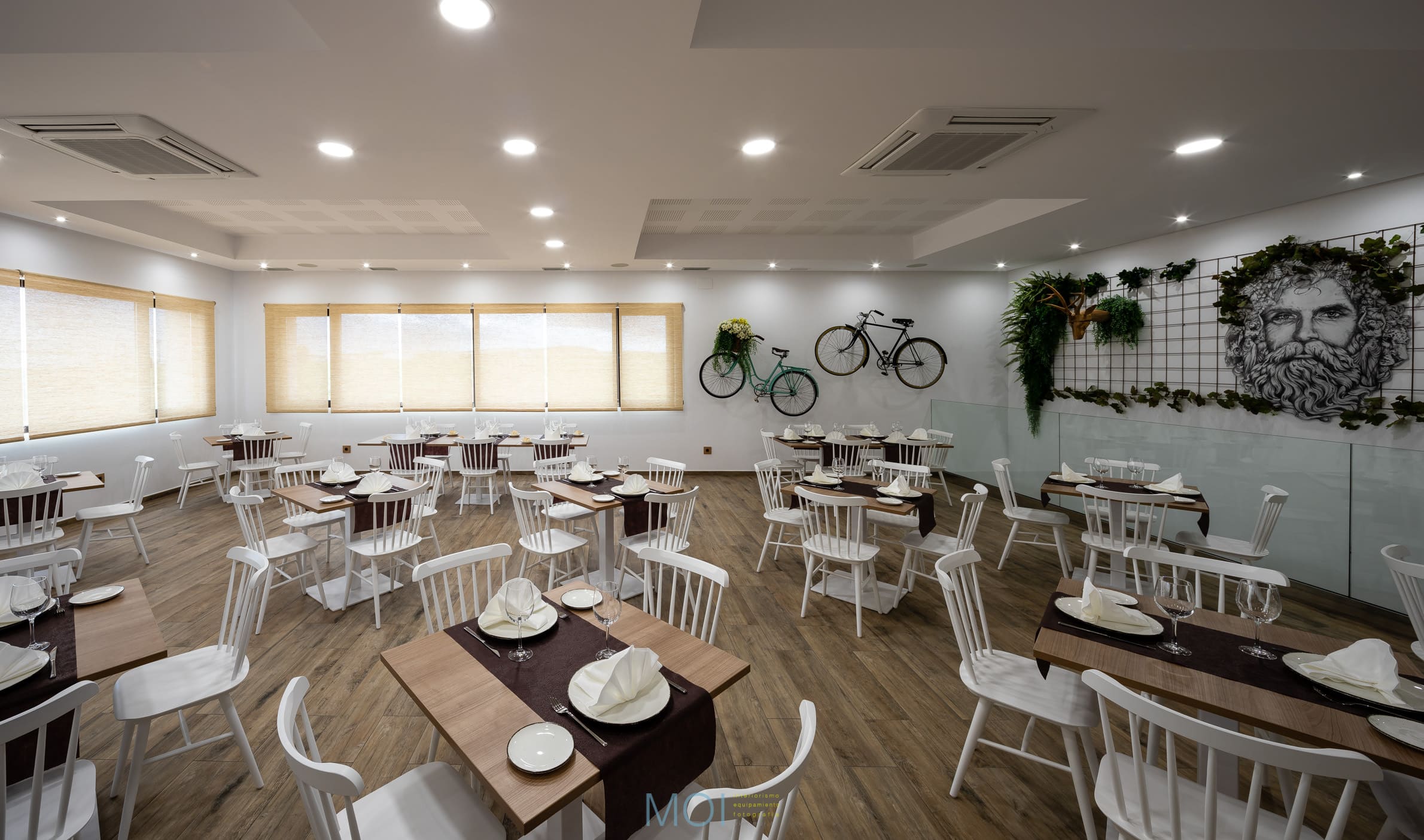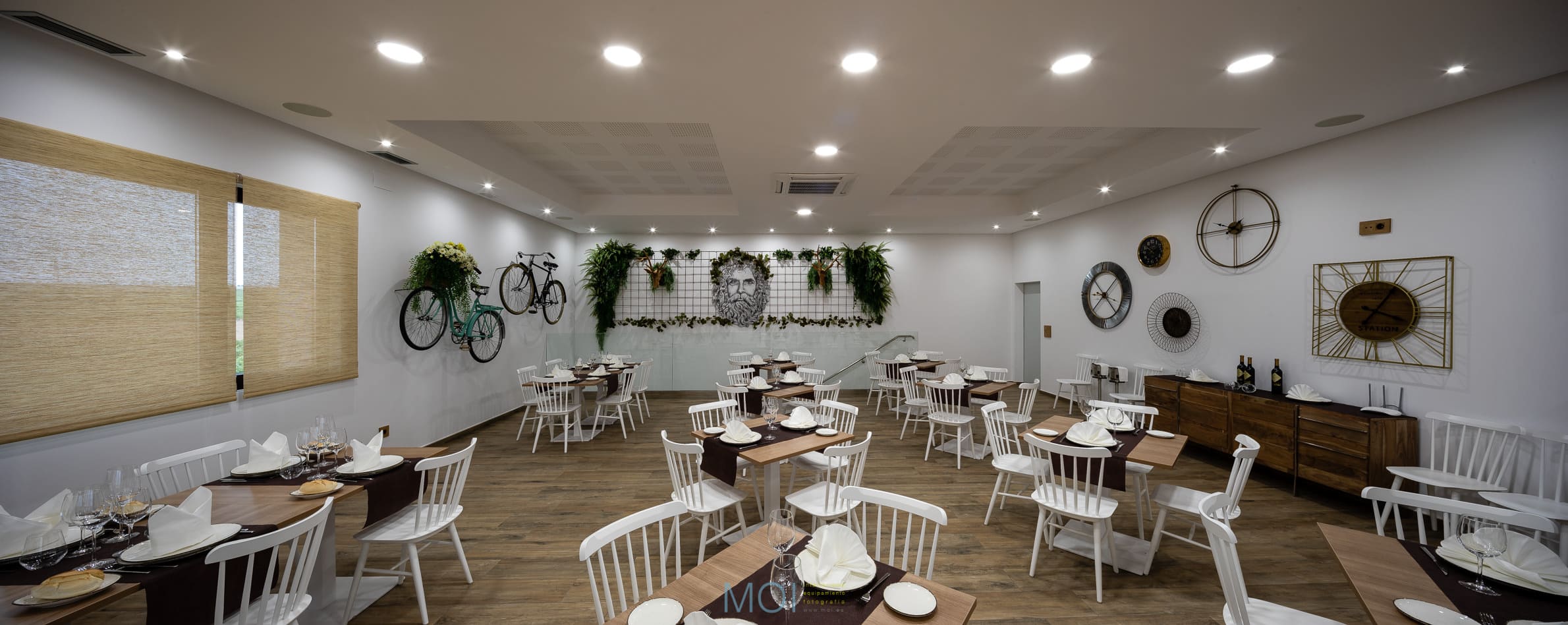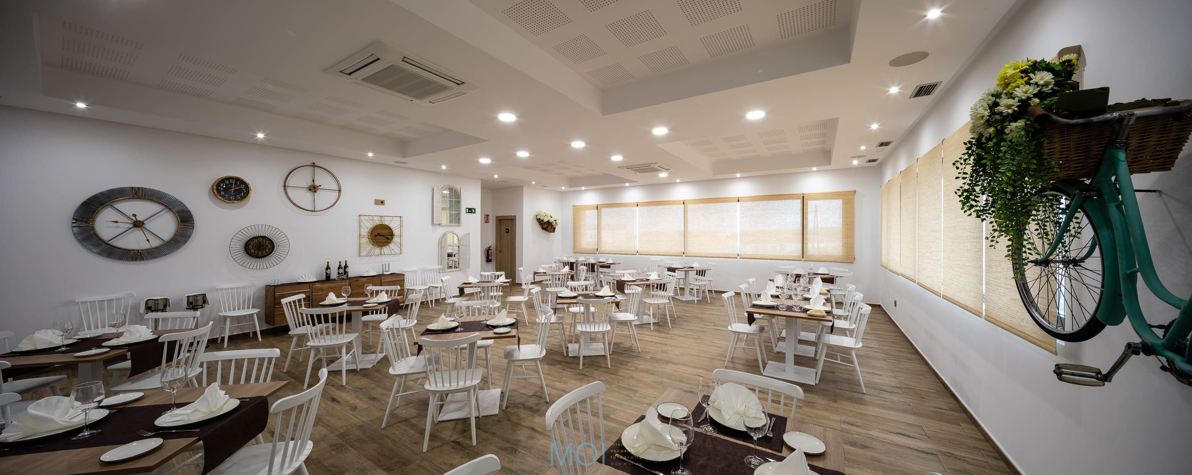 Se trata de una instalación rodeada de los típicos viñedos de la zona que cuenta con cuatro ámbitos diferenciados: Zona de cafetería, zona de terraza y dos salones comedores de amplia capacidad.
