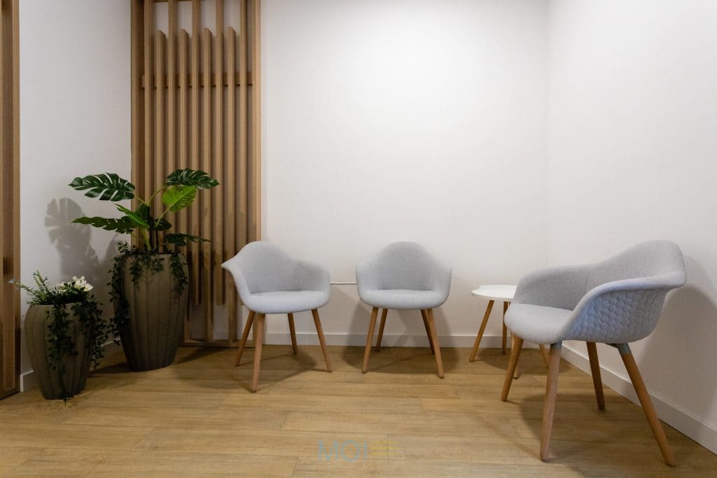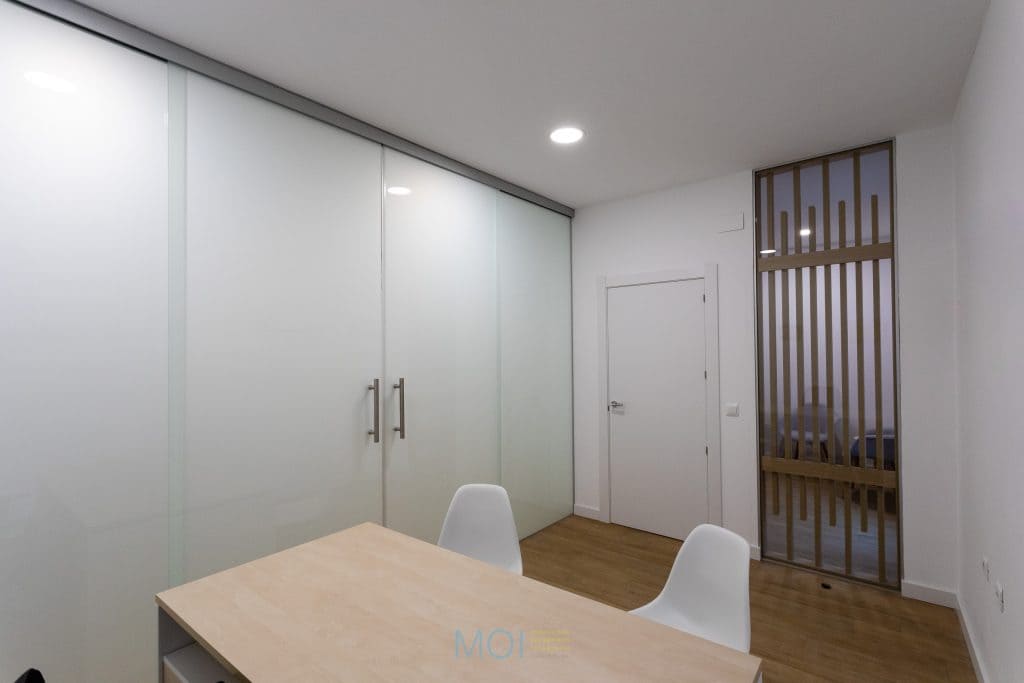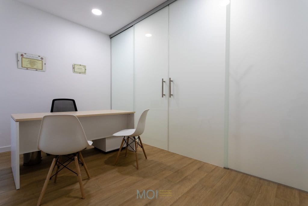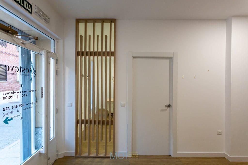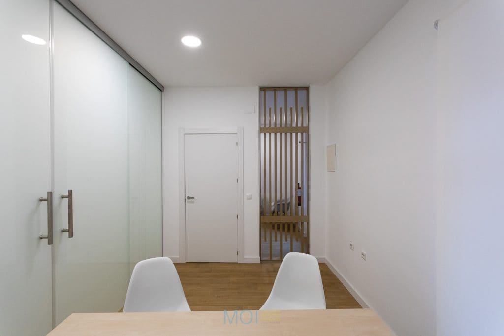 MOI ha realizado esta intervención para transformar un pequeño local destinado a tienda en una clínica de fisioterapia en Medina del Campo. Se ha buscado crear un espacio amable y acogedor en el que el paciente se sienta a gusto desde el primer momento. Debido a las pequeñas dimensiones y a la exigente normativa a cumplir se han articulado soluciones que permiten integrar unos espacios en otros, separaciones ligeras que tratan de no compartimentar las estancias sino de integrarlas.