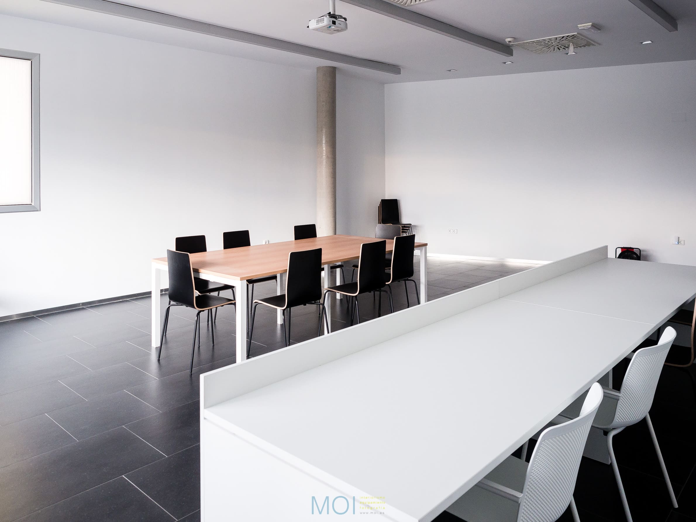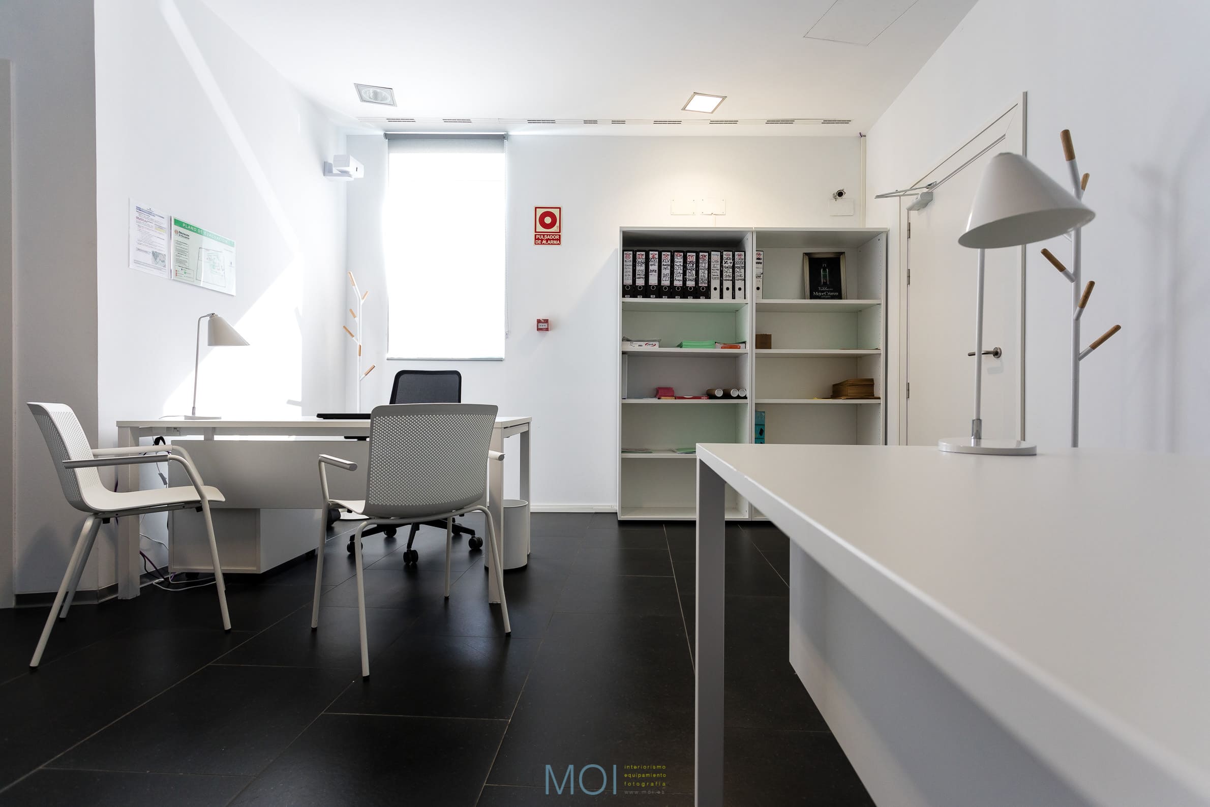 La intervención de MOI ha consistido en la instalación de mobiliario de oficina, sillería operativa y de colectividades, mesas de conferencia, complementos, percheros, lámparas, biombos fonoabsorbentes y sistemas de almacenamiento.