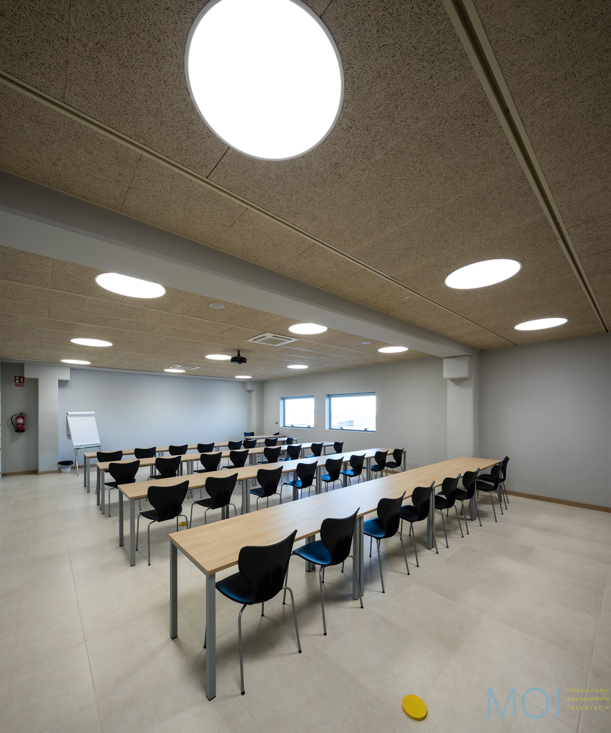MOI ha realizado el equipamiento de mobiliario y complementos así como las mamparas divisorias. Se ha buscado un equipamiento funcional basado en la imagen corporativa que la multinacional matriz quiere implantar en sus sedes, aportando ideas y soluciones que mejoraban la propuesta inicial.